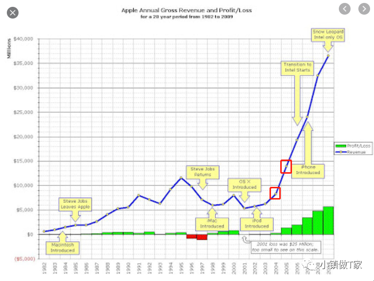此时的特斯拉,像极了2005年的苹果公司。当时的苹果公司因为库克的大刀阔库式改革(砍产品线+供应链优化),首次实现了利润的大幅增长,将苹果由处在盈亏边缘能力薄弱的公司(是的,乔布斯执掌苹果二十年,没怎么赚钱)打造成首次大幅盈利的公司。
