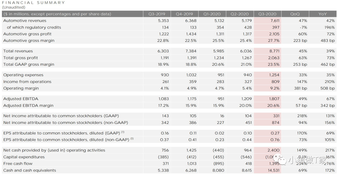2020年第三季度,特斯拉在许多层面上都是创了新纪录。该季度总收入同比增长39%,毛利率为23.5%,营业利润为8.09亿美元,营业利润率为9.2%。Model3的全球交付量比起上一季度有了明显的增长。
