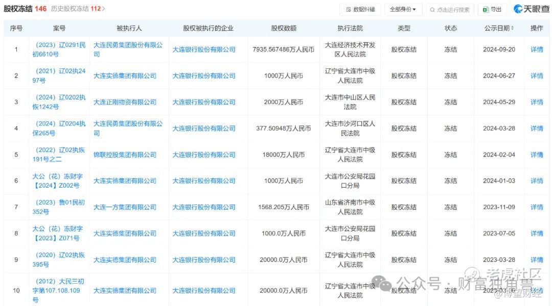 虽然背靠东方资管,但大连银行在股权问题上却频现波折。据天眼查显示,大连银行尚有大量股权处于质押和冻结状态,且有多位股东存在股权冻结、股权质押、被执行人、限制高消费等经营困难现象。这些股东的股权变动对大连银行的股权结构产生了较大的影响,也对其资本补充和风险抵御能力构成了挑战。