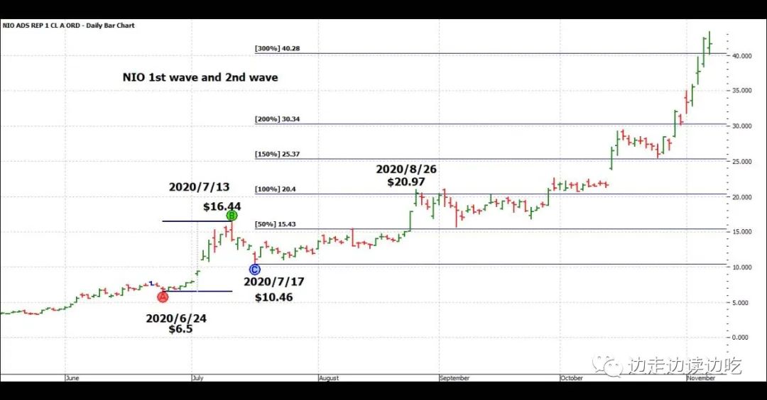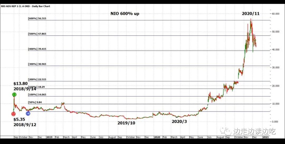 据说金主爸爸的条件苟刻,但至少能让蔚来起死回生,股价因此达到上市第一浪的600%升幅,见下图: