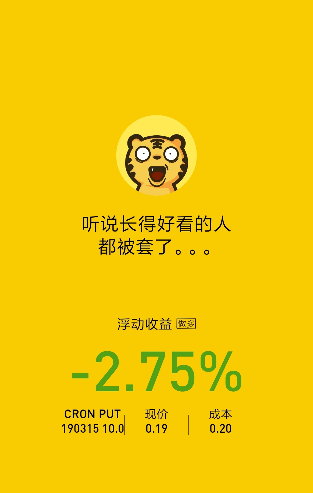 你那个是10块的put.....怎么可能赚.....我昨天买的2/8号23的put翻了一倍