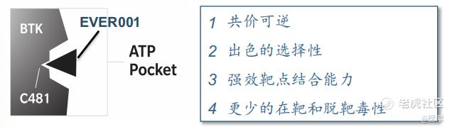 EVER001是一款第三代共价可逆BTK抑制剂,可以选择性与BTK激酶结构域中的 C481 形成可逆的共价结合,在对 BTK 有强大抑制作用的同时,也具有出色的选择性,可以进一步强化安全机制。
