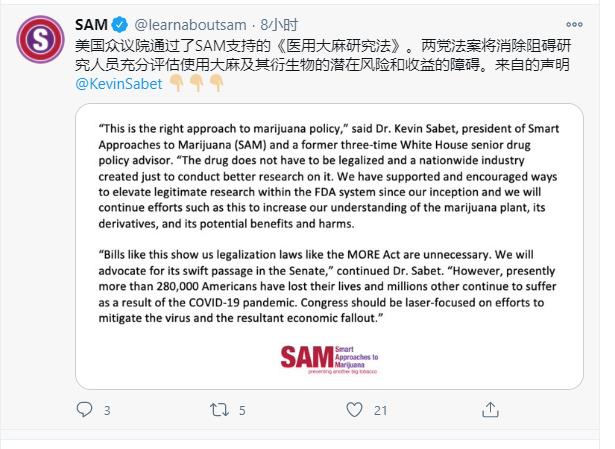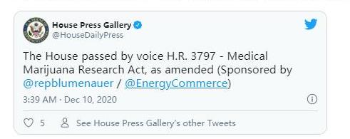 为了避免大家混淆, 我先跟你们解释下,上周众议院通过的大麻相关法案是HR.3884,是关于大麻去罪化的。根据最新消息,今日凌晨3点美国通过了法案HR3797,是关于支持科学家更好的研究医用大麻的。