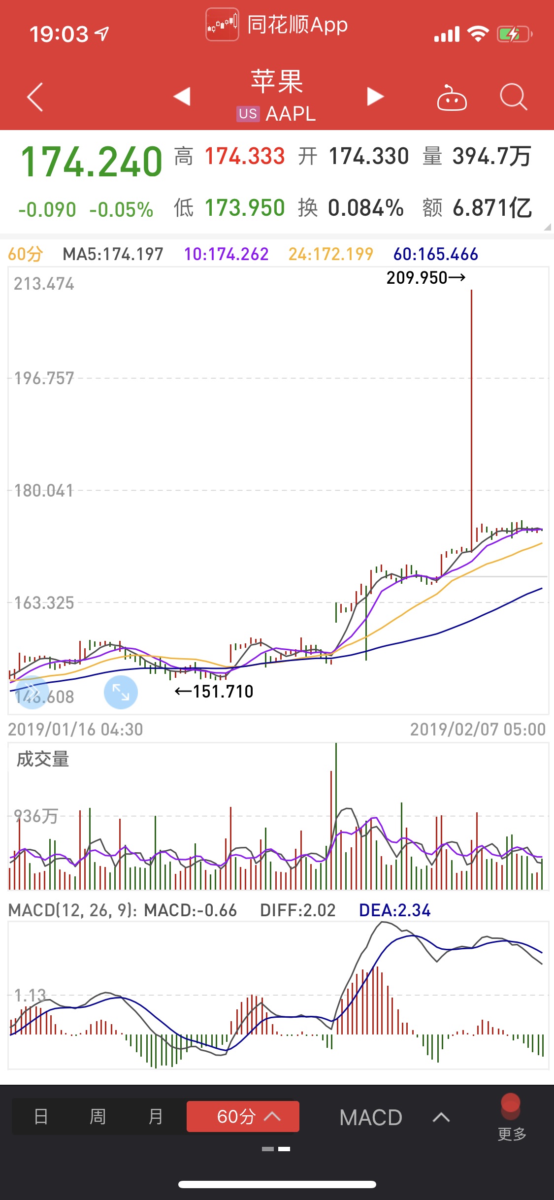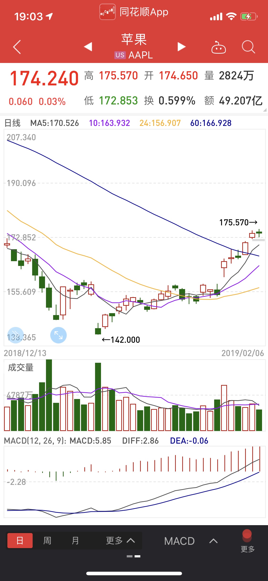 $苹果(AAPL)$ 昨天收十字星线,太迷惑了。今晚选择方向。从缺口来看已经有两个缺口,第一个确定突破无疑,第二个中继整理缺口!涨势基本确定无疑了大概率后势继续涨,有股耐心持股,想进的等待探底进场吧。macd有所死叉迹象应该还会探底,多头耐心等待,“空头来个极短线大约一到两个小时的put”快进快出。