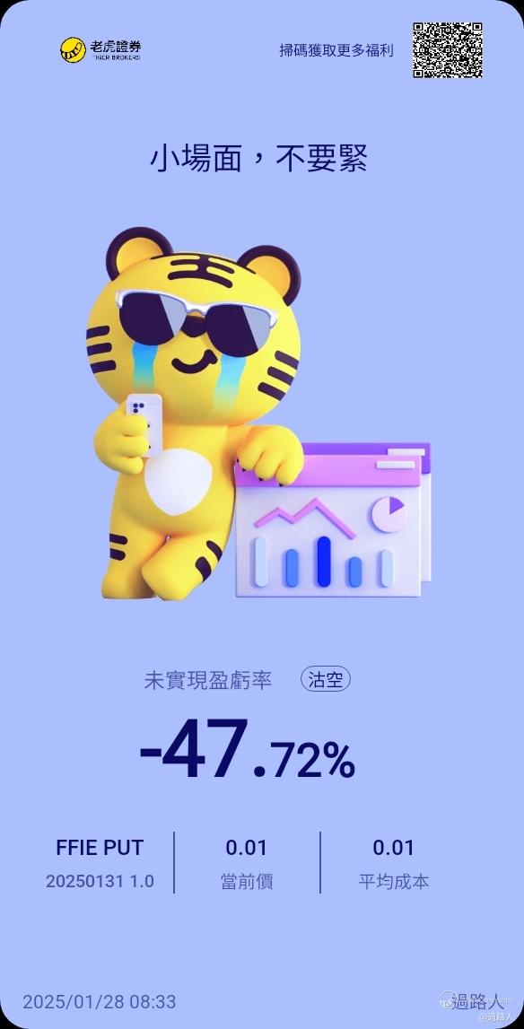 $Faraday Future(FFIE)$ 我继续卖put假股王,今次不小心,按错了制,原本想落0.02。点知按错了 0.01卖了。还是大手卖出了22张。幸好老虎收费平。不收佣金。今次总成本也要7.43。如果顺利的话,还会有一点利润