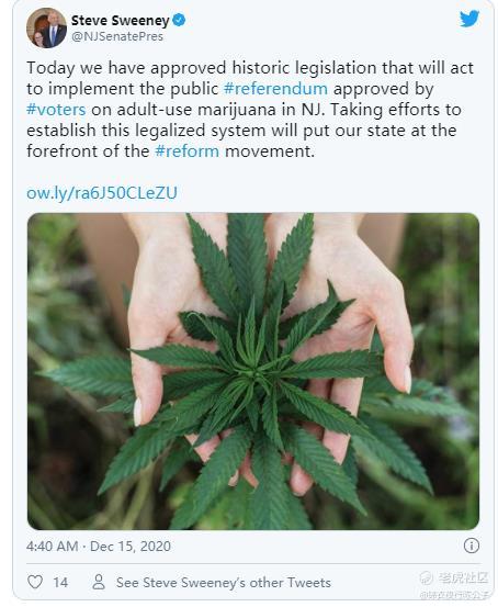 核对了新泽西州近日发表的官方通告:“预计州议员将在12/17星期四对大麻合法化法案S21 / A21进行投票。告诉新泽西州立法机构:我们必须确保最终法案的优化并考虑对被禁令打击最严重的社区进行再投资。” 没错,是在今天新泽西州自己搞了一个投票,要先于联邦开始做点实事儿了!
