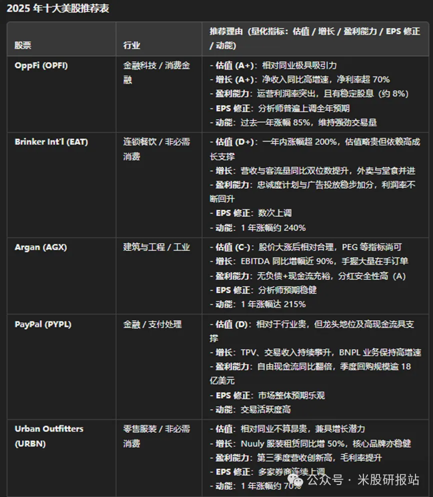 2025年十大推荐美股