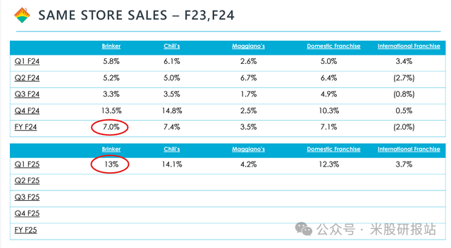 下图:Brinker 2025 财年第一季度的 IR 材料