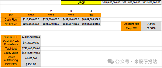 下图:DCF模型计算