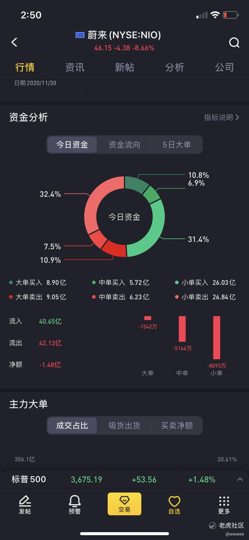 老虎和futu的资金流向怎么差这么多?老虎显示中小单出逃。 futu显示今天反而净流入?