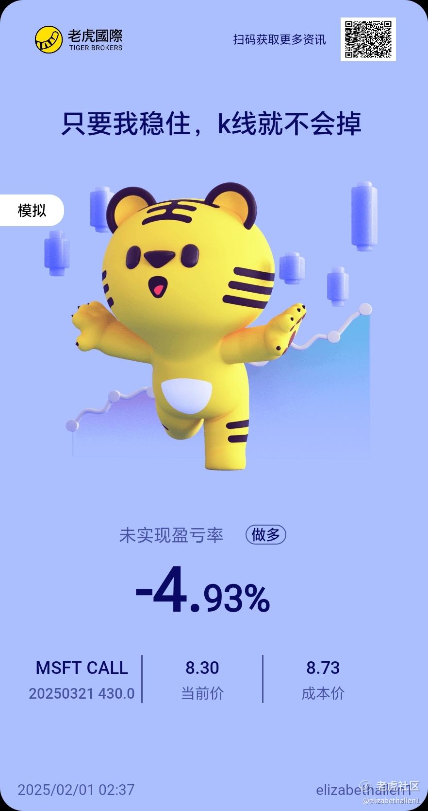 $MSFT 20250321 430.0 CALL$ 期权一定注意进场位置,耐心等待,如果没办法可以溢价进,前提超买,行情不好成本越低越好。实盘我自己卖了可以我在14的时候没卖以为还能涨,千赚75美金,不然就不用那么**看币圈