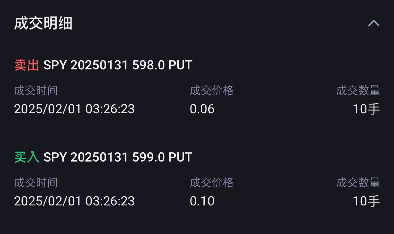 4、昨天在市场快速下杀的时候,我做了一笔SPY当日到期的垂直价差的期权交易: