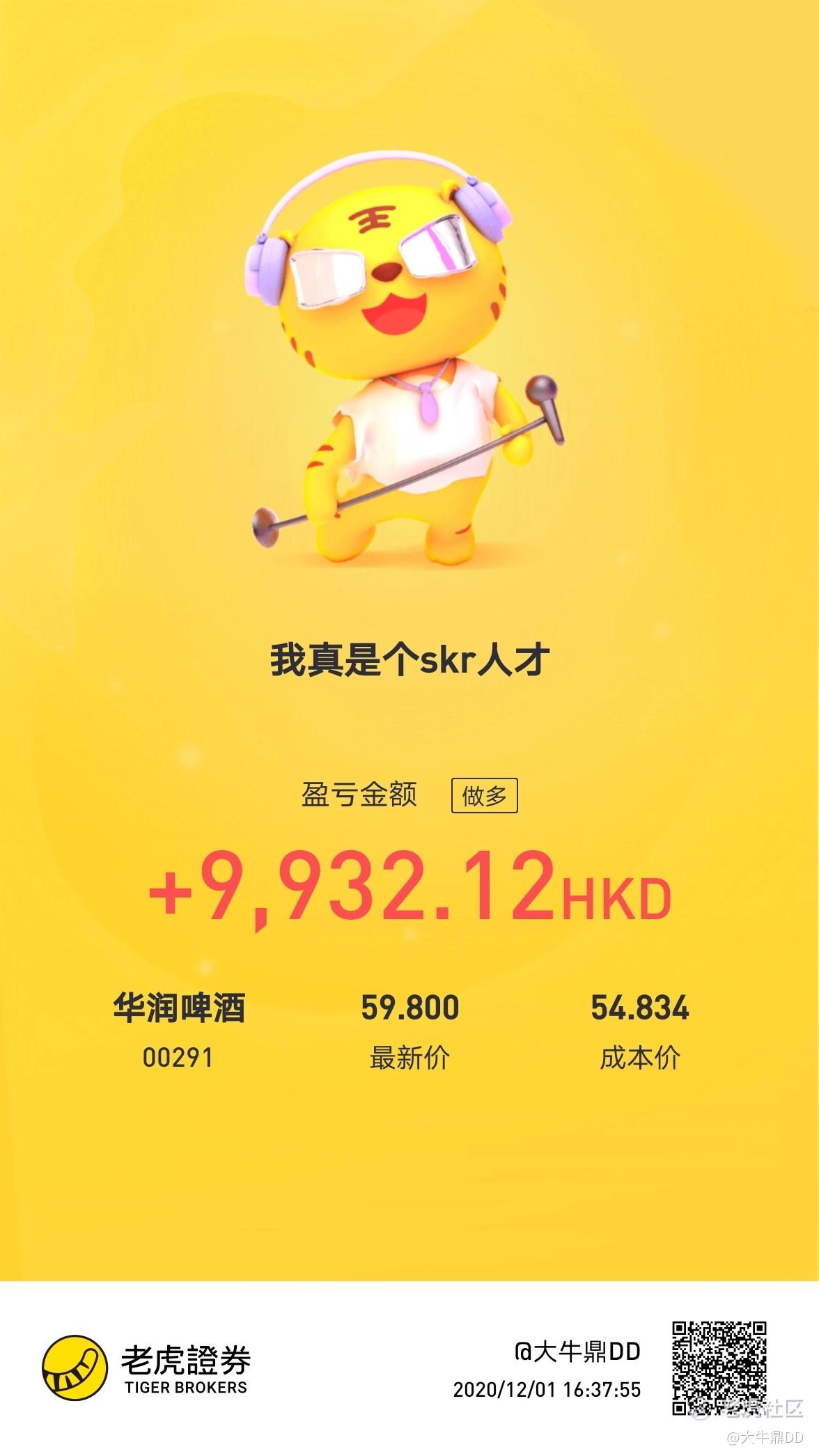 3.华润啤酒00291 持仓中 收益9932港元