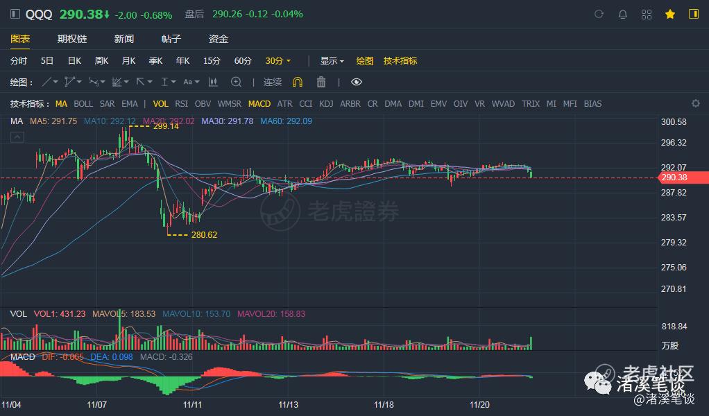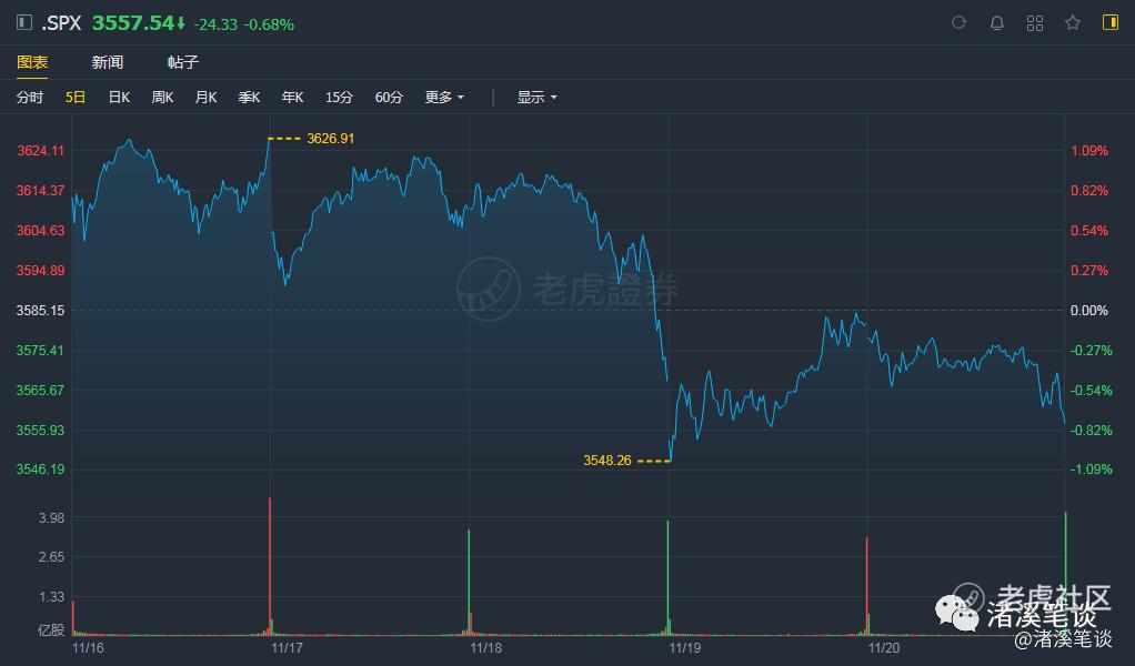 周二:巴菲特13F文件公布:减仓金融股,新建仓医药瑞辉默沙东,苹果仓位稍微减少。美国十月零售月率 预期:0.5% 结果:0.3% 。 鲍威尔重申疫情风险:美国经济可能继续稳健复苏,但随着疫情反弹,复苏可能会失去动能。 美股低开震荡收跌