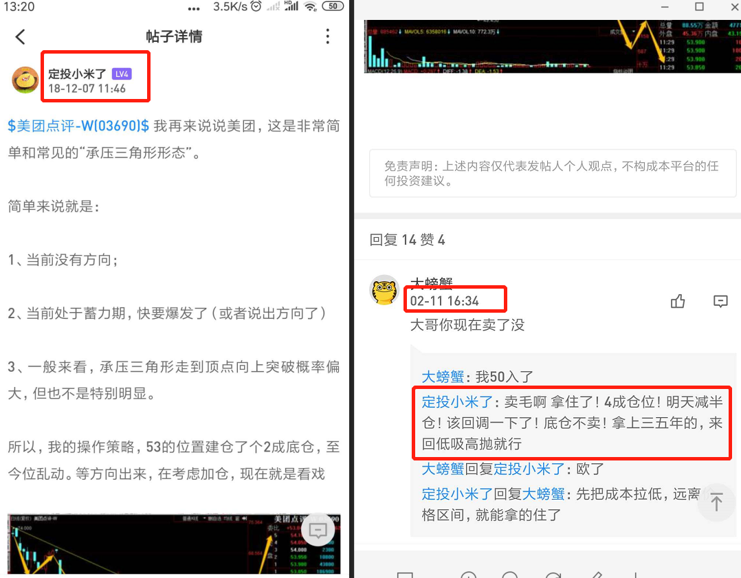 上图是,去年12月给美团花的图,前天跟股友互动说,昨天早上有冲高的机会就要跑,可能是高点!