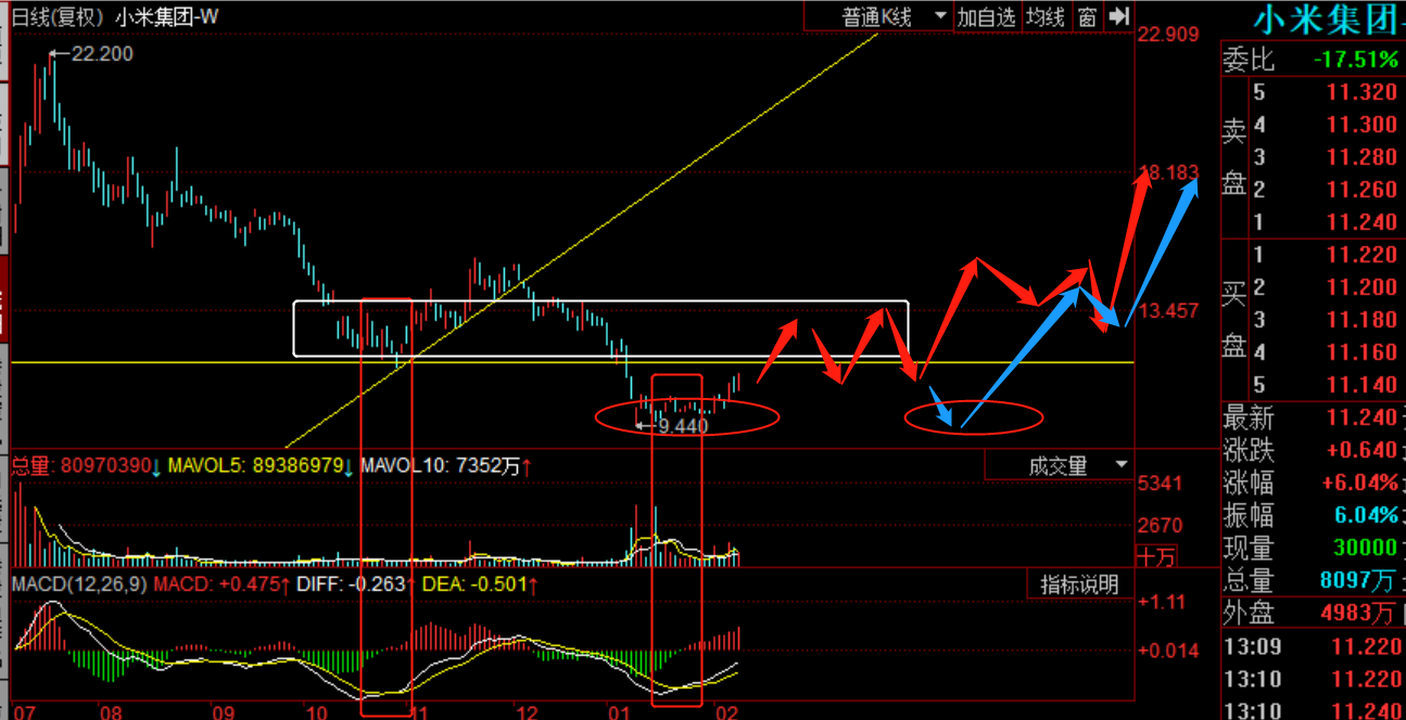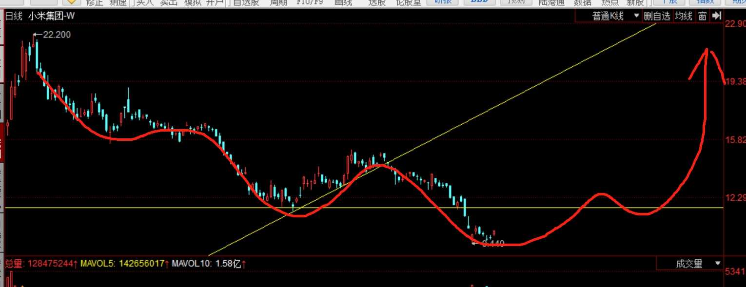 $小米集团-W(01810)$ 刚才有兄弟说我画图挺准,谢谢支持了,那我再画一画: