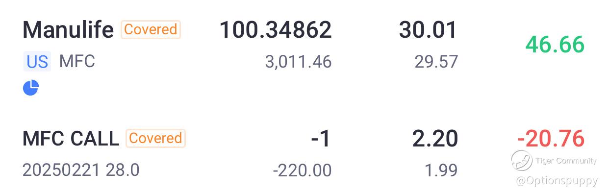 • Stock Owned: 100.35 shares of MFC at ~$29.57$Manulife(MFC)$