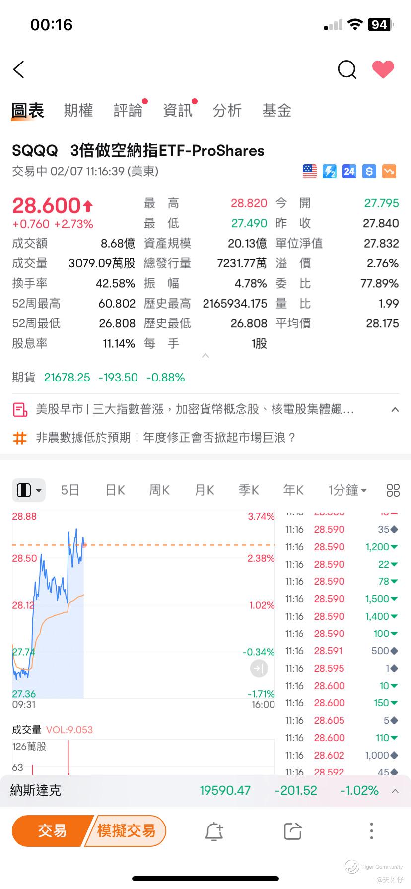 本来准备$27 左右买入sqqq ,差少少就急插