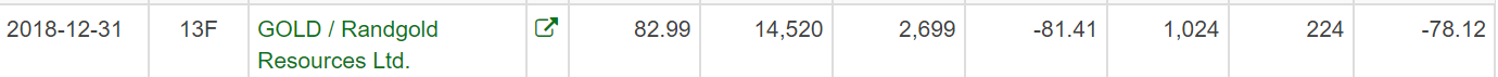 另外,桥水四季度猛砍Randgold的持仓。Randgold此前与巴里克黄金合并。增持的金矿股则为NEM。