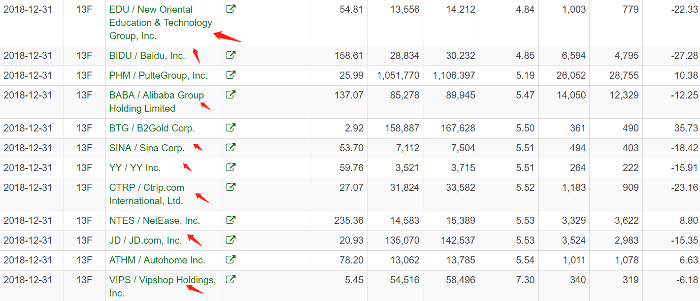在中概股方面,普遍呈现增持。包括百度、阿里巴巴、新浪、京东携程等,不过加仓比例都在5%左右。