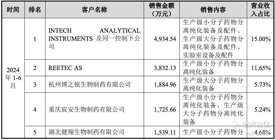 而2024年上半年,印度INTECH ANALYTICAL INSTRUMENTS晋升为汉邦科技的第一大客户,其他四名主要客户则再次“消失”,变更为“REETEC AS”“杭州博之锐生物制药有限公司”等。