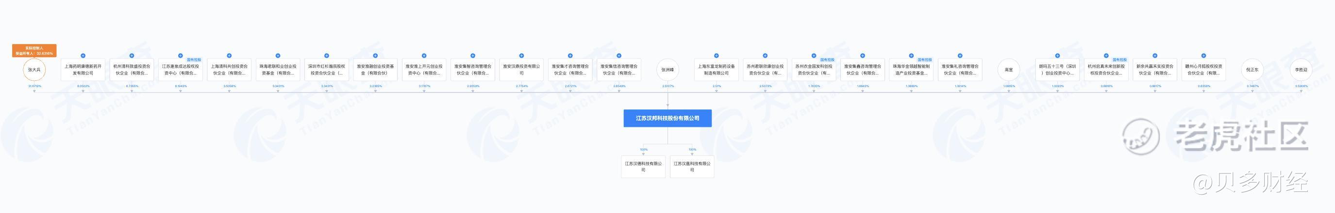 天眼查App信息显示,汉邦科技成立于1998年10月,位于江苏省淮安市。目前,该公司的注册资本为6600万元,法定代表人为张大兵,主要股东包括张大兵、药明康德、清科创投、红杉等。
