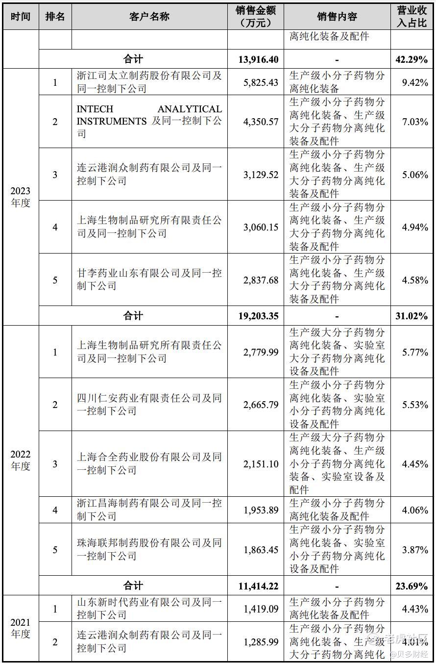 但在2023年度,司太立、印度INTECH ANALYTICAL INSTRUMENTS、润众制药等历史主要客户重回汉邦科技前五大客户行列,上海生物制品研究所有限责任公司及同一控制下公司的地位降为其第三大客户。