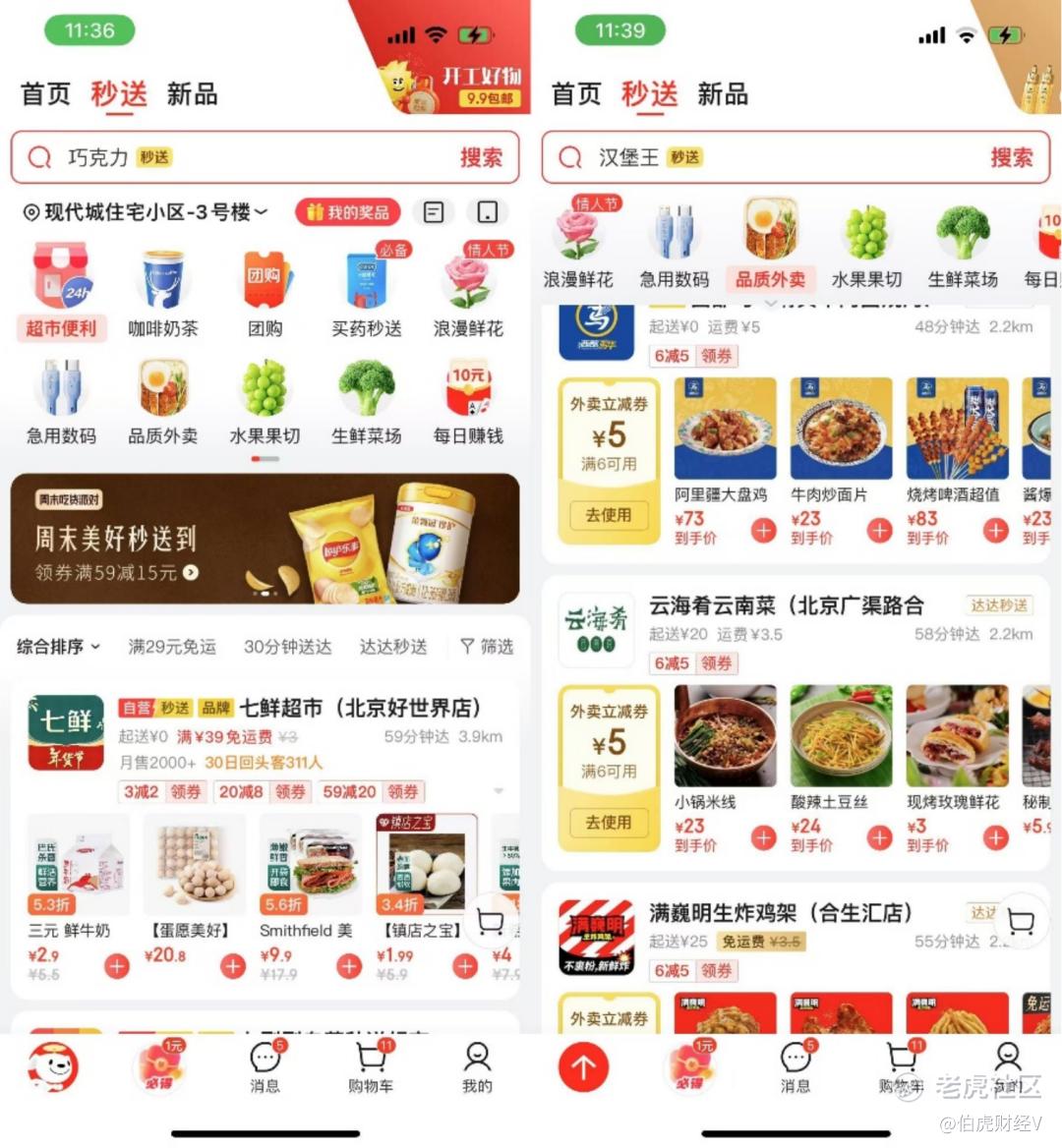 去年5月,京东重启了京东外卖,将原来的京东小时达、京东到家等即时零售业务升级成“京东秒送”,提出最快9分钟到家。去年底,“秒送”上线了咖啡奶茶与快餐外卖等品类,并单独升级为一级页面。