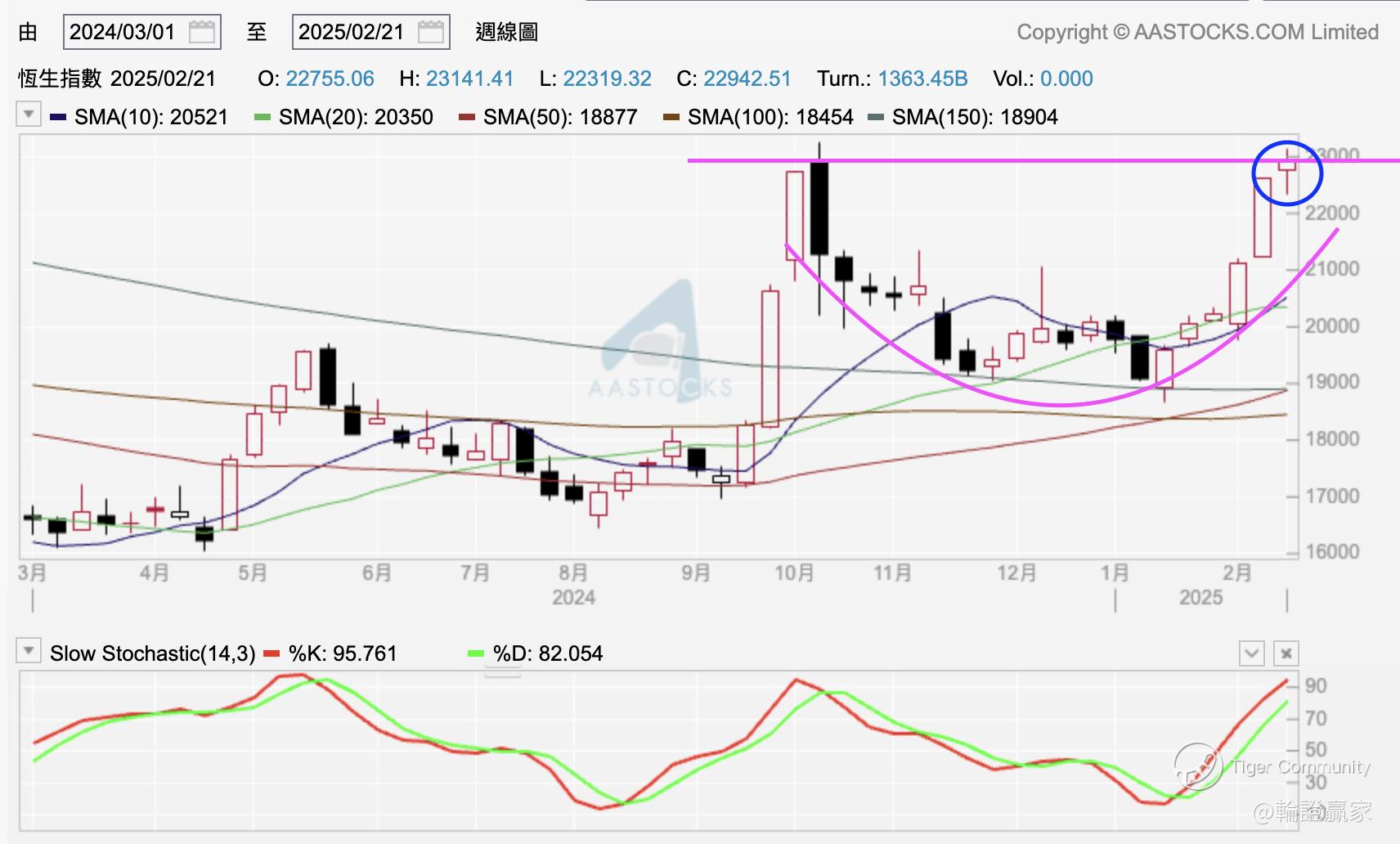 10点后指数向下一度低见22901后,同目标只系争3点就即刻弹返上去。一弹大步走地弹上100点,23000点再次入返,圆底生成七成,今朝开市位23090点拉线出嚟做圆顶颈线,作战室又已经反手好仓爬格仔。