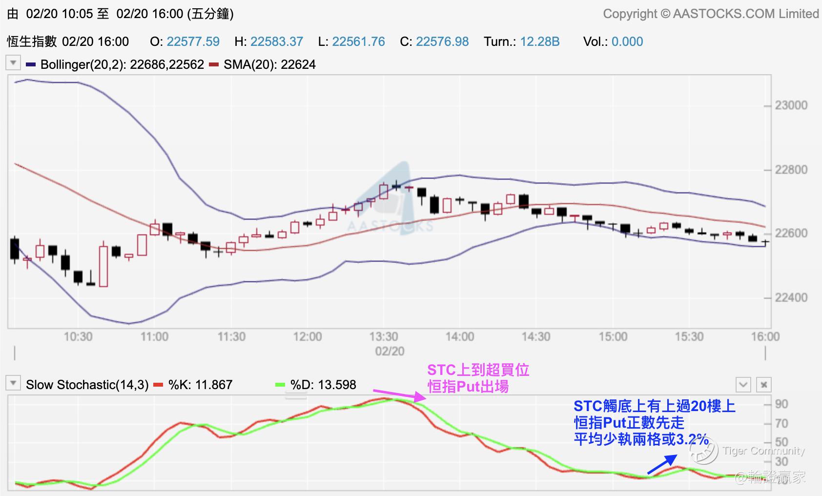 还好喺下半场开市之后见到Slow STC(14.3)已经上到超买位,去到1点45分前都都仲系,叠加指数喺五分钟图100线前出「十字星」,比多一个出淡仓嘅讯号。