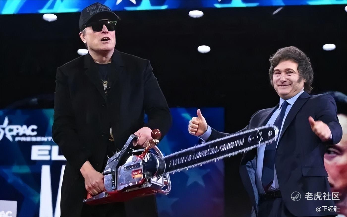 当地时间2月20日,在华盛顿郊区举行的保守派政治行动会议(CPAC)上,在全球率先开启大幅裁员举动的阿根廷总统米莱,向马斯克赠送了一件颇为特别的礼物,一把电锯。这一举动不仅引发现场观众的欢呼,也迅速引发全球关注。