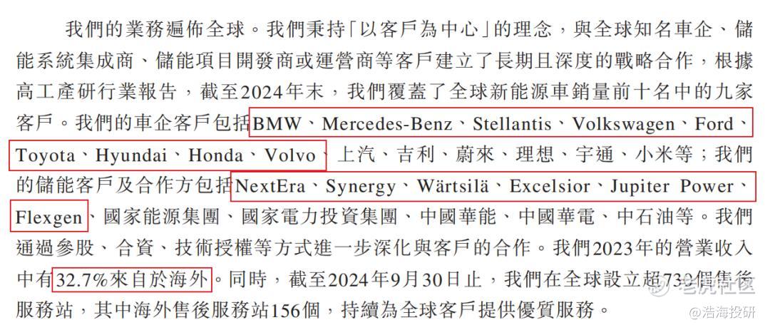 宁德时代主要国际客户和海外营收占比 摘自《招股说明书》