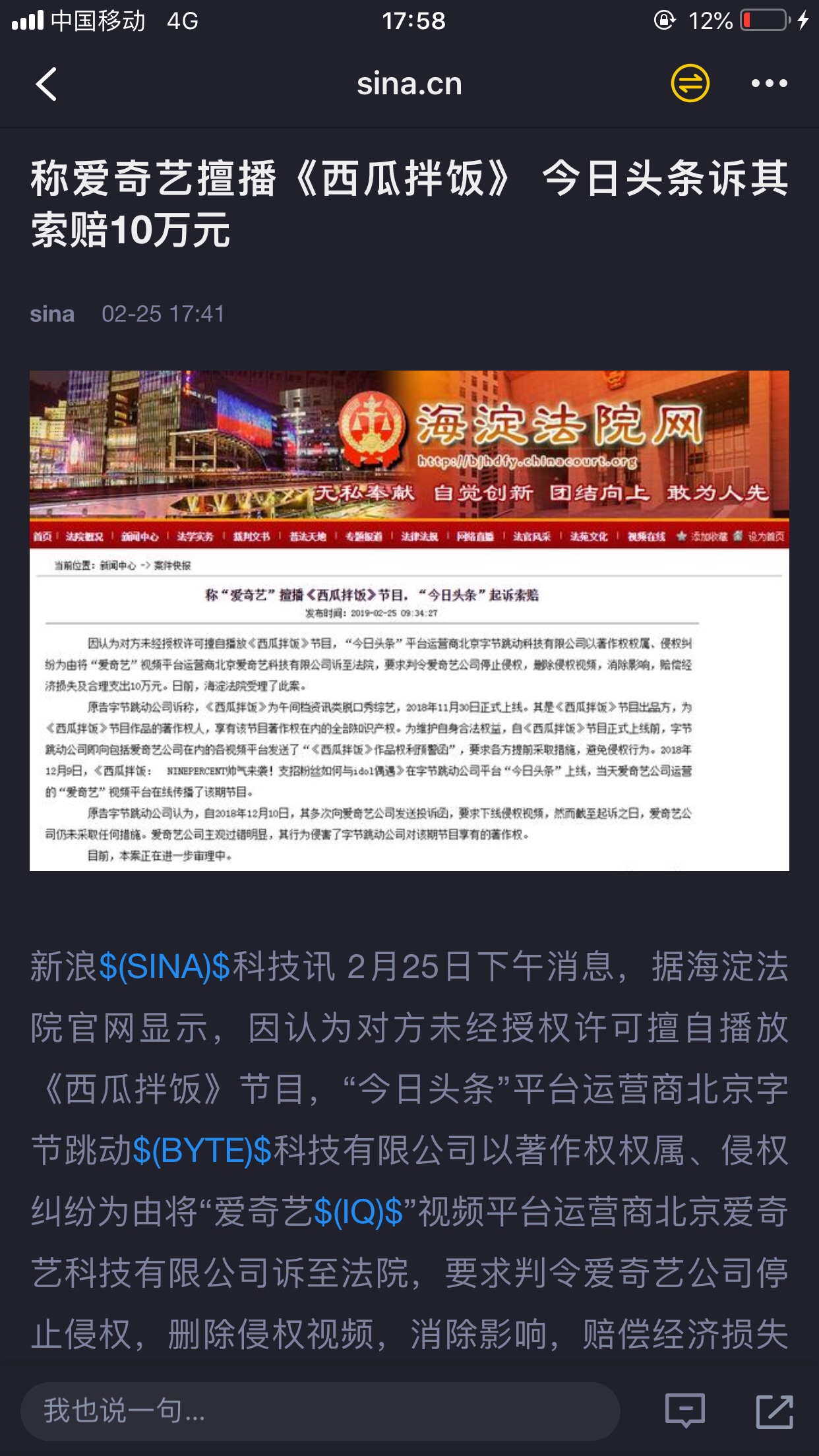 $爱奇艺(IQ)$ 这,今天会跌么?
