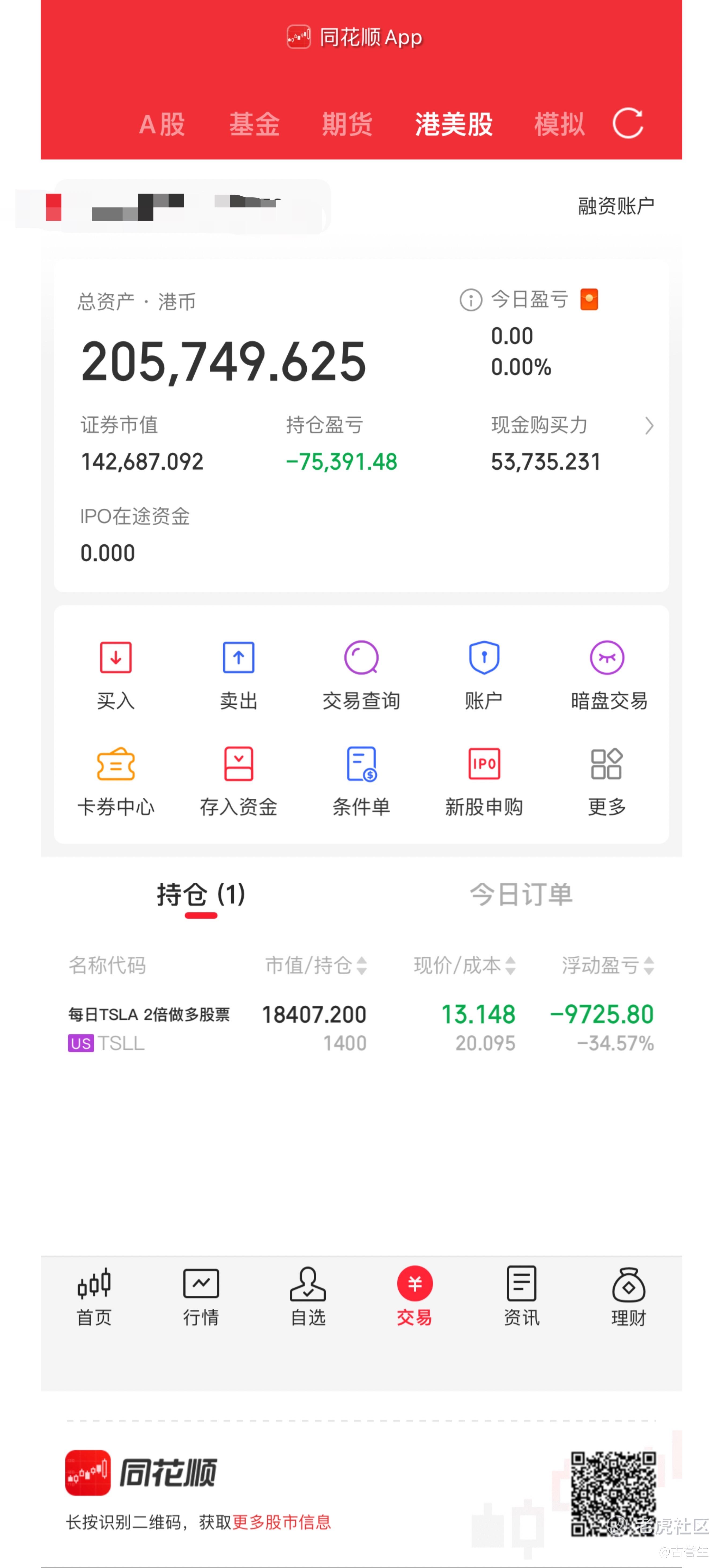 这不是老虎证券吗?你咋还用上同花顺软件呢?