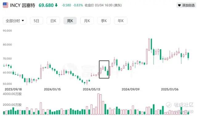 2024Q2,Baker Brother大幅减持Incyte约544.11万股(占该机构持股总数15%),期间Incyte的股价经历了短期的震荡调整,随后回升回稳。