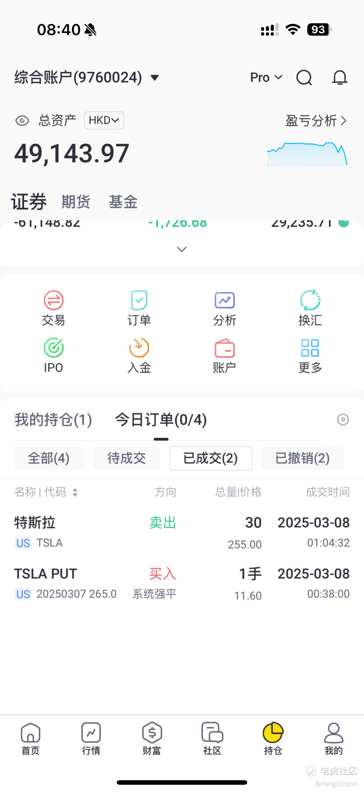 你保证金不够了,行权要买100股特斯拉26500美元,相当于要25万左右港币