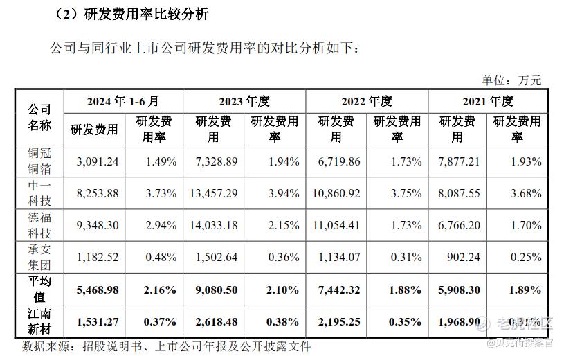 在资金紧张背景下,江南新材研发费用率也明显低于同行业均值,研发资金投入甚至不足行业均值的50%。