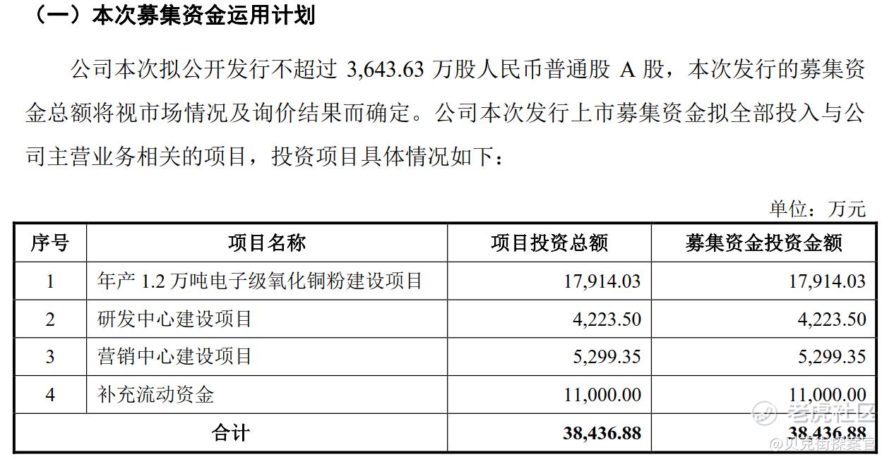 据招股书,江南新材拟募集38,436.88万元用于“年产1.2万吨电子级氧化铜粉建设项目”等,其中11,000.00万元用于补充流动资金,占拟募集总额的28.62%,明显高于“年产1.2万吨电子级氧化铜粉建设项目”之外两个项目所需资金总额。