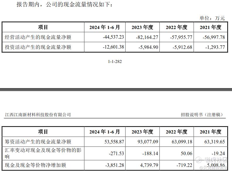 受其影响,江南新材2021年至2024年前六个月,现金及现金等价物净增加额波动较大。