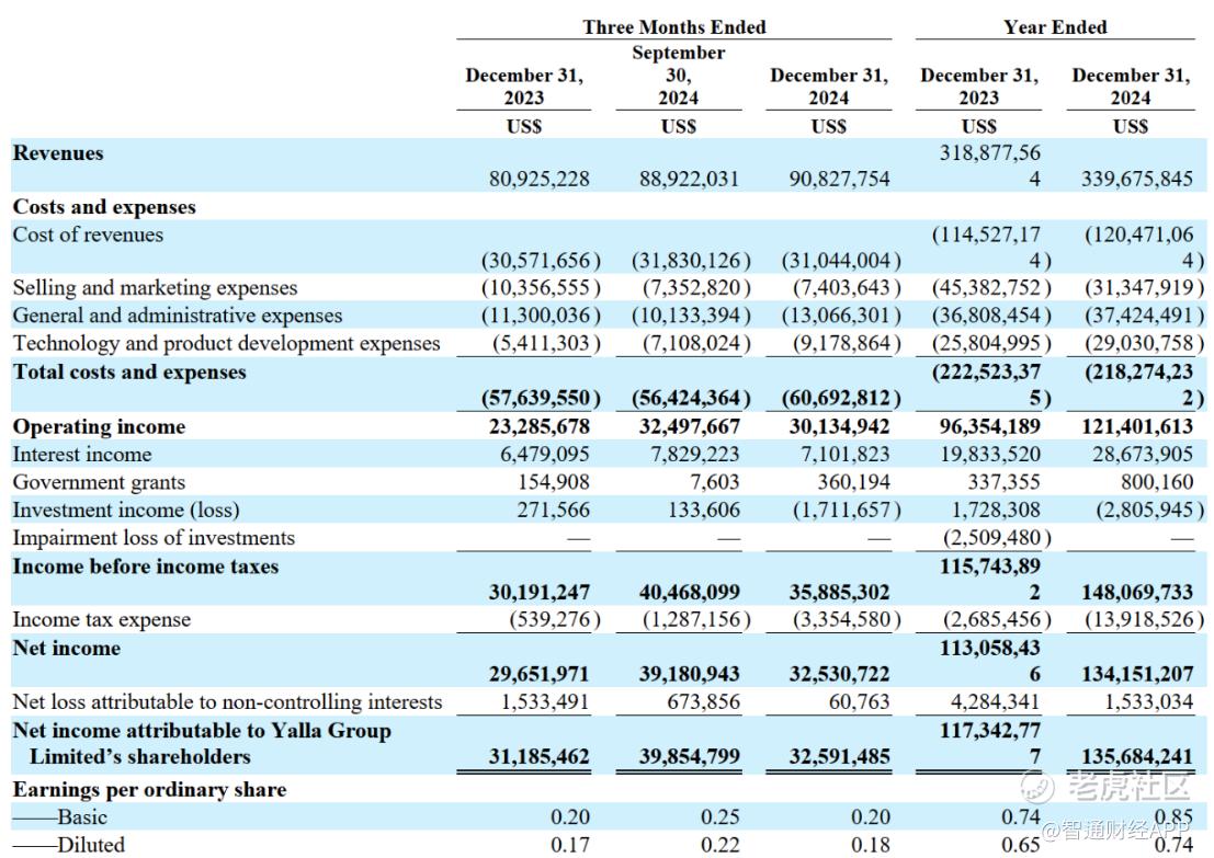 智通财经 APP 了解到,2024 年,雅乐科技年营收为 3.40 亿美元,其中社交服务收入为 2.25 亿美元,游戏服务收入为 1.14 亿美元。利润端方面,公司当期净利为 1.34 亿美元,同比增长 18.7%,净利润率为 39.5%; 经调整净利为 1.49 亿美元,较上年同期的 1.31 亿美元增长 13.6%,对应净利润率则为 43.8%。