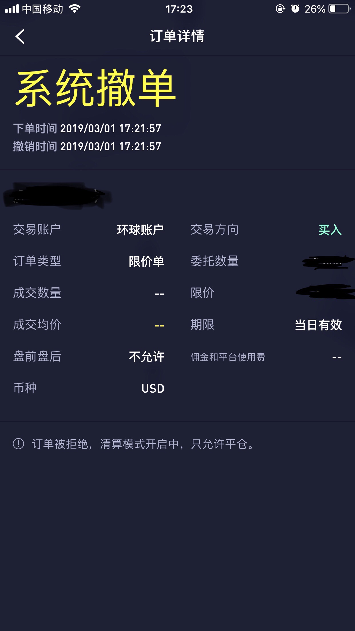 交易中不允许,说系统清算模式只能平仓,到底啥意思;