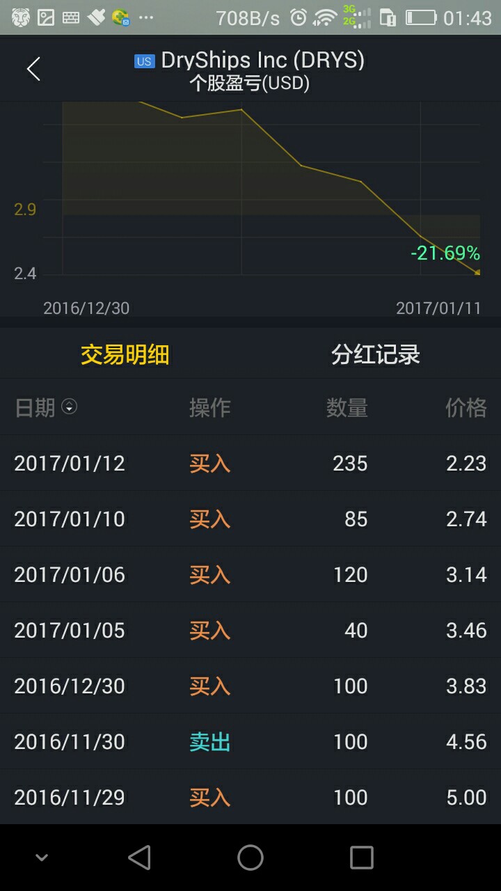 $DryShips Inc(DRYS)$ 补仓235股 ,反正横竖都亏,就拼一把。