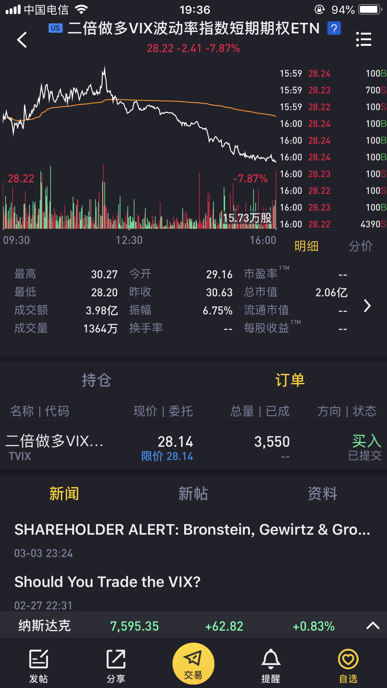 $二倍做多VIX波动率指数短期期权ETN(TVIX)$ go.go