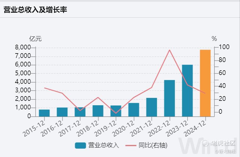 根据比亚迪(002594)3月24日晚间发布的2024年报,实现营收7771亿元,增长29%,比2023年42%增速略低,但考虑到在超过6000亿营收的规模上,这个增速还是相当惊人的。
