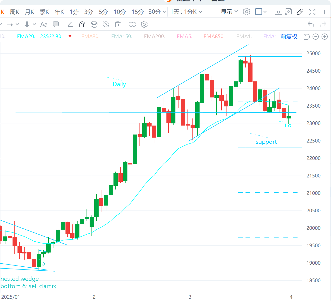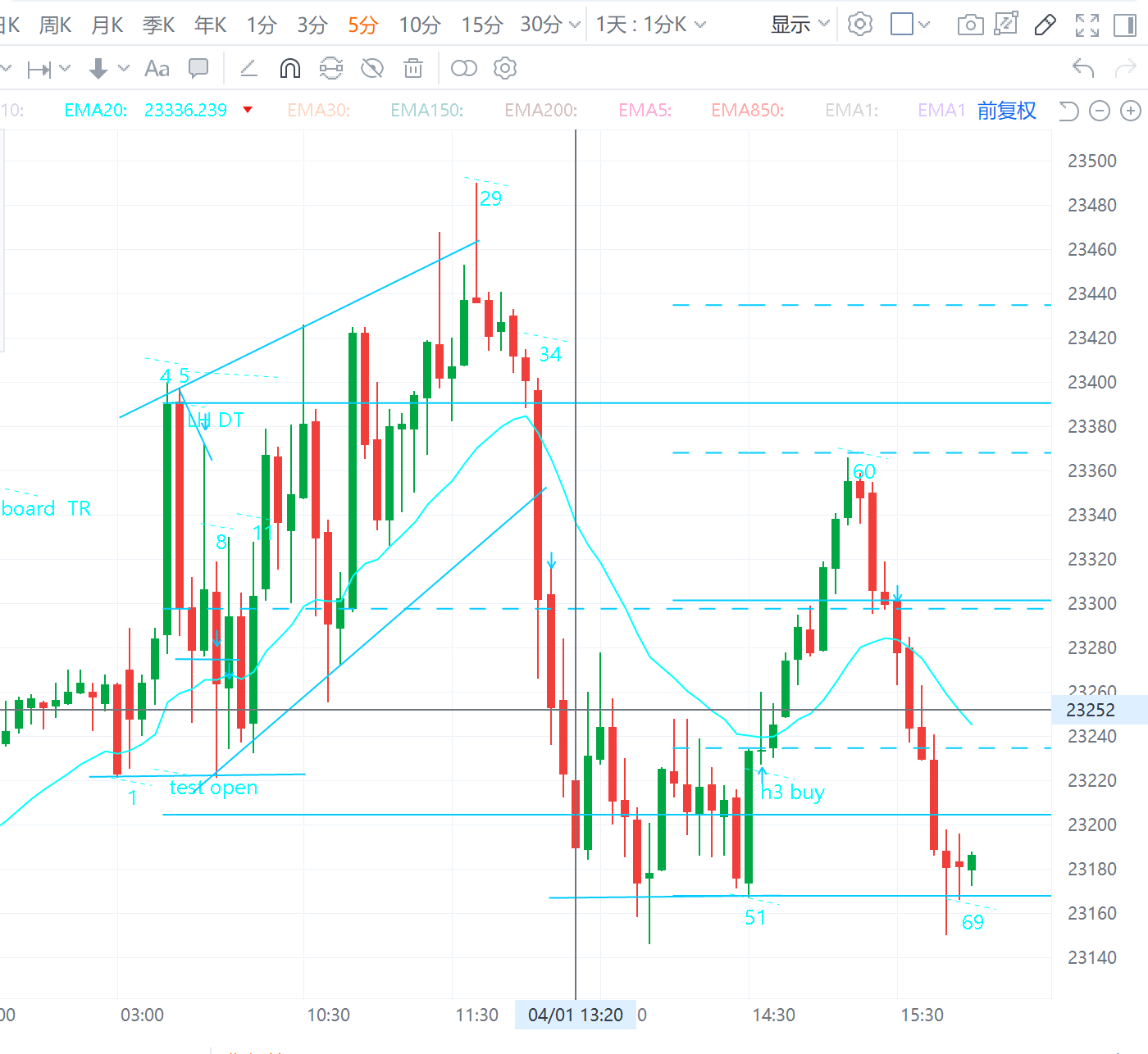 日内交易一天之中就会经历各种行情, 各种嵌套式的wedge, double bottom等等,互相作用周而复始,反复上演。