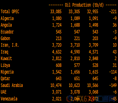昨天,OPEC公布了月度产量报告,根据路透调查显示,