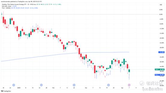 TSLY在特斯拉股票上涨时通常表现大幅落后,而在特斯拉股票下跌时却几乎承受了同样的跌幅。这种风险/回报比对投资者很不利。