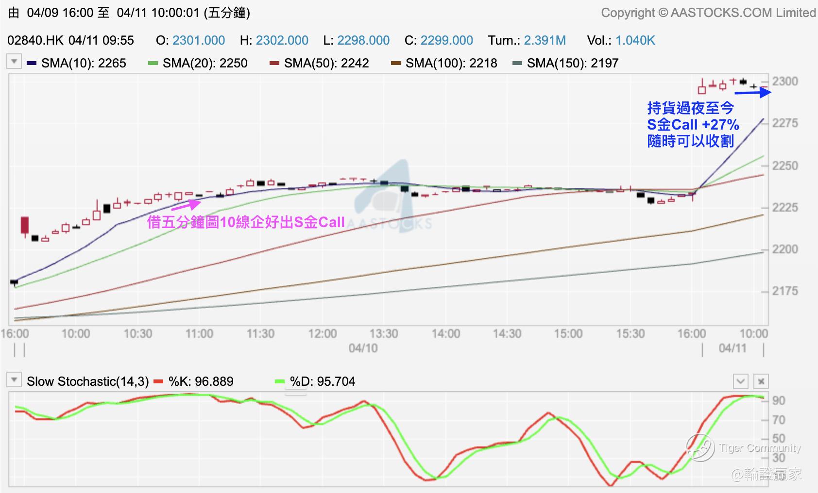 今朝再来加关税(好似开始有少少麻目),啲金价又嚟料,而依家9点55分,只2840嘅单位价格爆升64元,报2297元,创出52周新高;最高见过2302元。