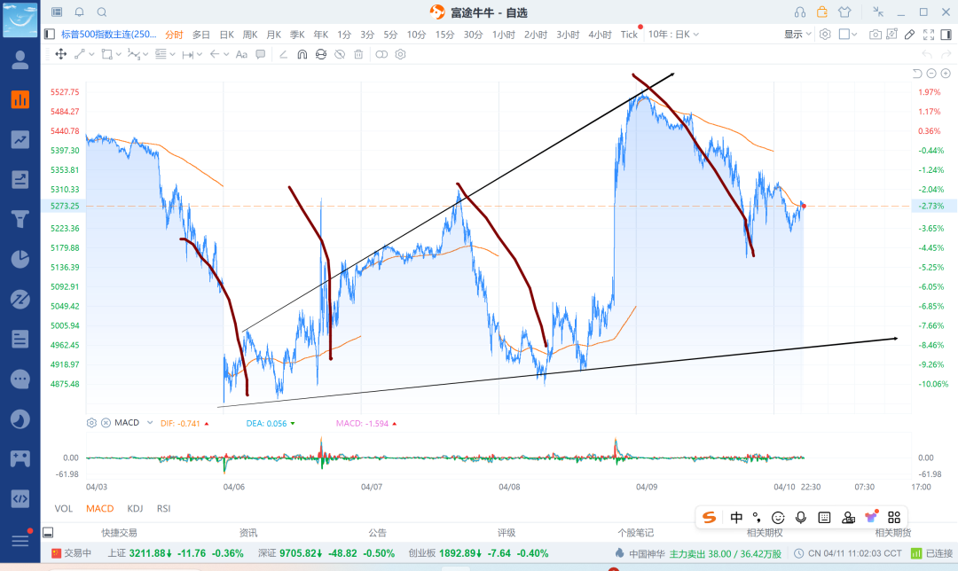 25-4-11 美股大幅度反弹后持续慢慢补回空