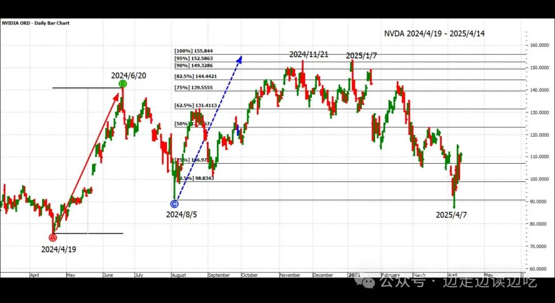 →本月7日英伟达股价跌破第二浪起始点,但也形成了双底支撑的反弹。